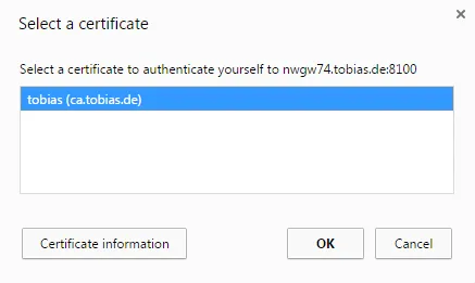 A popup should appear (given that you have a valid client certificate installed). Select the right certificate.