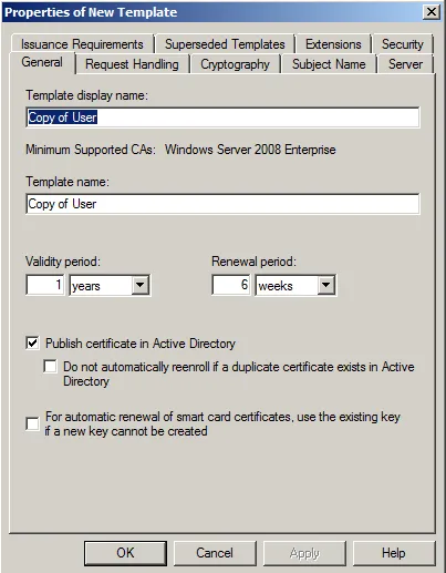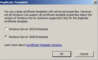 Select for which CA type this template is going to be generated and later on used. You should go for at least Windows Server 2008.
