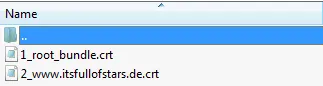 The server certificate is the CRT file. It is already in PEM format. To make this clear, I renamed it to .PEM. Uploading the certificate to the web server and activating it in the Apache configuration for HTTPS.