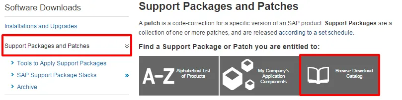 Download SPAM update from SAP market place đź”—. Navigate to: Support Packages and Patches -> Browse Download Catalog