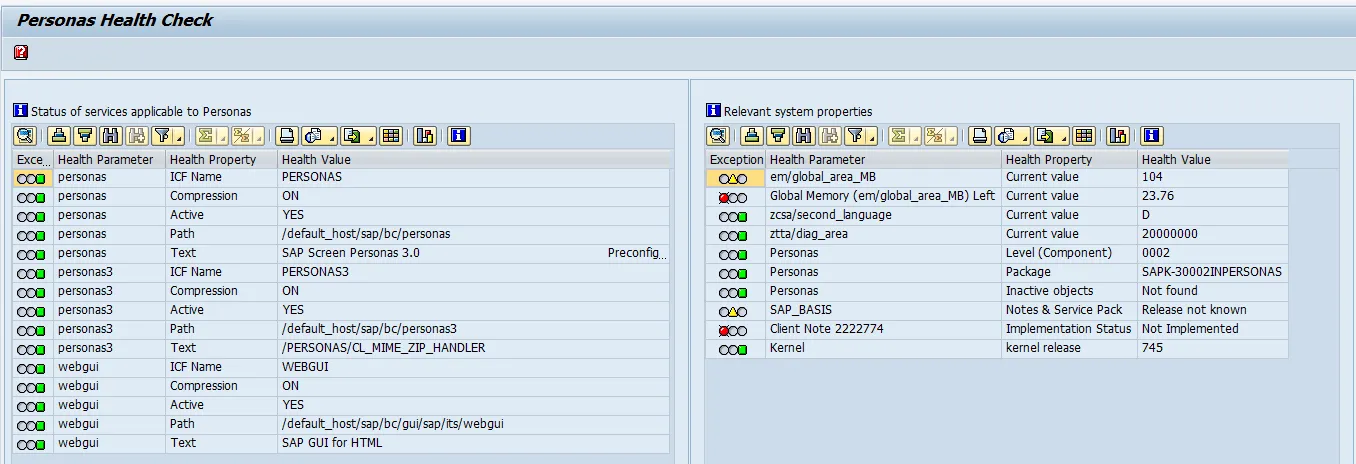 To know the health status of your Personas 3 installation, run transaction /PERSONAS/ADMIN and run the Health Check Tool.
