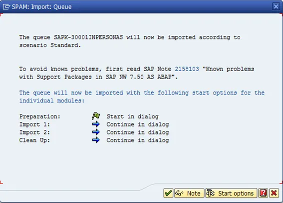 You get back to the main screen of SPAM. If all is good, you can see the status of the queue The status is now yellow and next action is given as import queue.