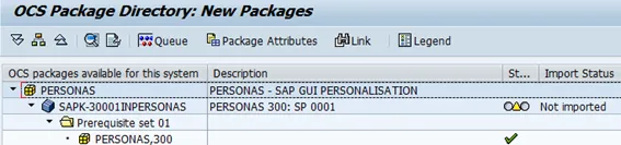 The pre-requisites must be met. The status needs to be yellow (not yet imported) and the perquisite set 01 all must be green and ok. For SP01, Personas 3.0 needs to be installed.