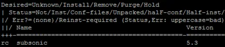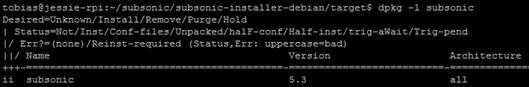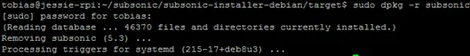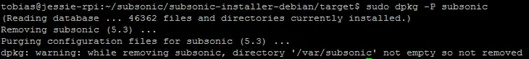 This removes the package, but leaves the config files (can be seen when running dpkg –l subsonic again):