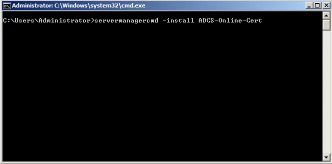 Command: servermanagercmd.exe –install ADCS-Online-Cert