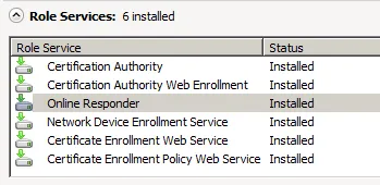 In the list of installed roles, Online Responder appears now with status installed.