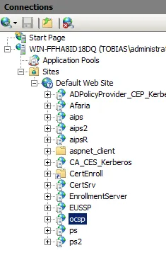 In IIS, a new web site with name ocsp must appear. This is the URL of the OCSP responder that is needed to be added to certificates by the CA.