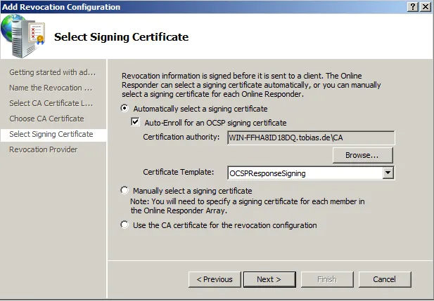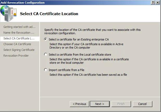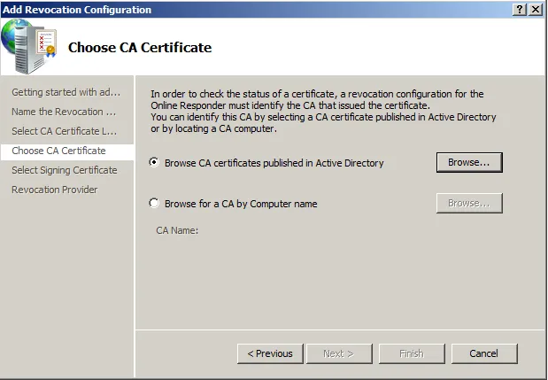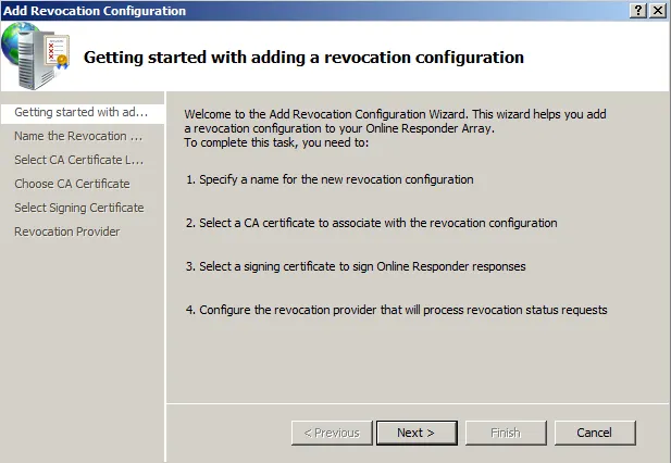 After installing OCSP component in Windows, it is time to configure the service: how OCSP requests are going to be handled; from where to receive the CRL, specify OCSP certificate, etc.