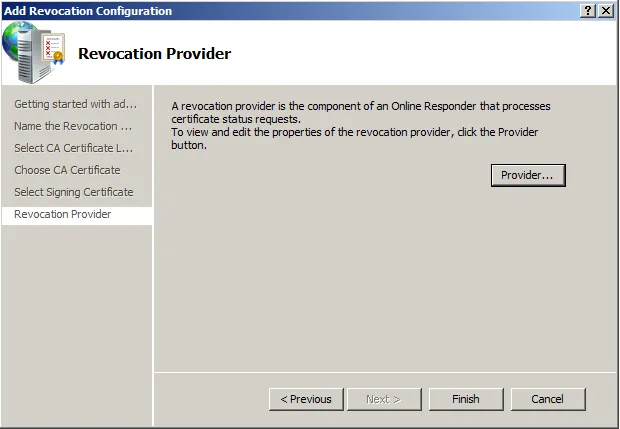 Configure the provider. That is, where OCSP can retrieve the information of revoled certificates.