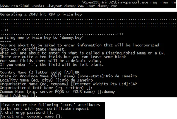 openssl req –new –newkey rsa:2046 –nodes –keyout dummy.key –out dummy.csr