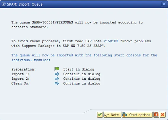 Select No. This brings you back to SPAM main screen. The status is now yellow and next action is given as import queue.