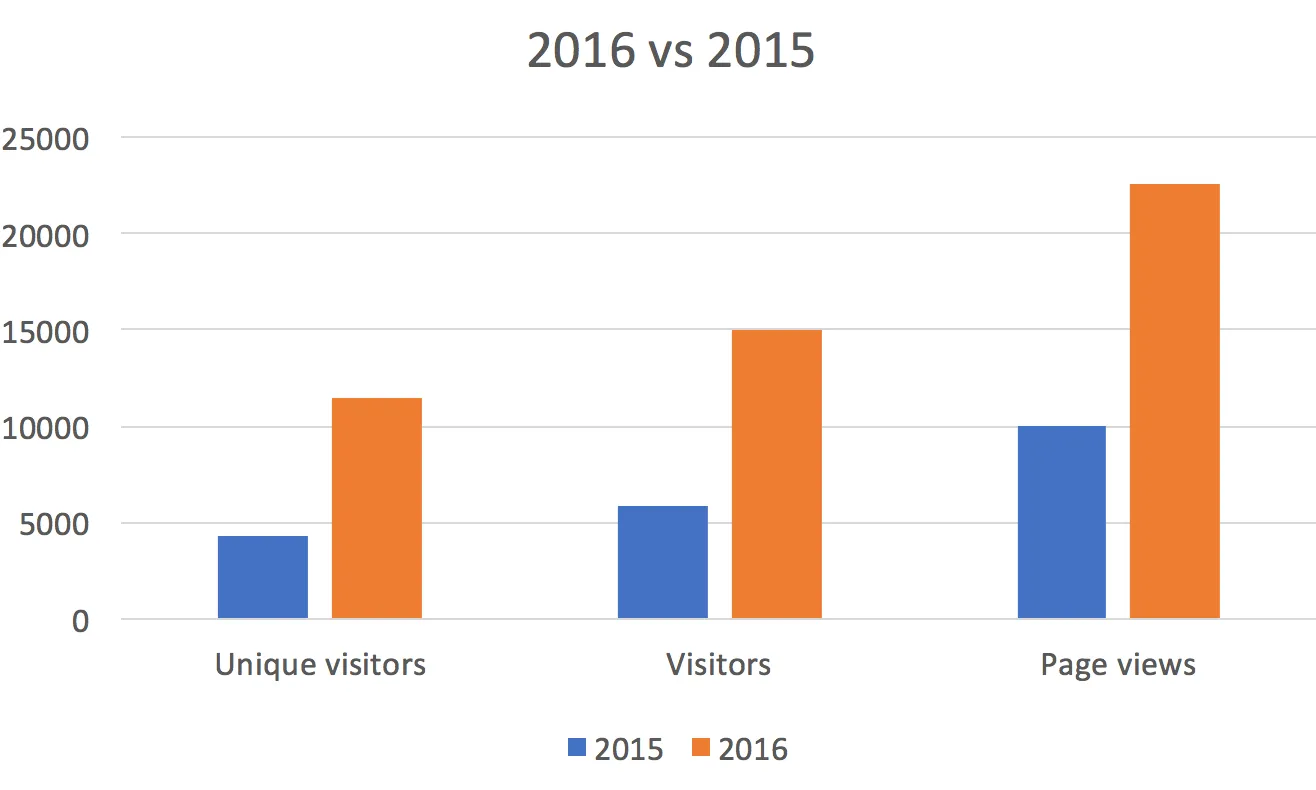 Short: all KPIs go up. I basically doubled the unique visitors and page views, and the number of visitors exploded. I do not think that I can perform better in 2017.