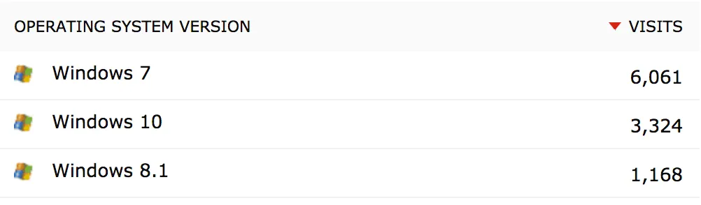 From the browser side, Chrome and Firefox lead, mobile users do exist. Not a big surprise, most content is related to work, and most people still work from a laptop / computer and not from a mobile device. This is reflected in the top 3 operating systems. Windows dominates the corporate world.