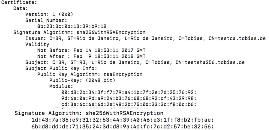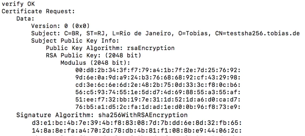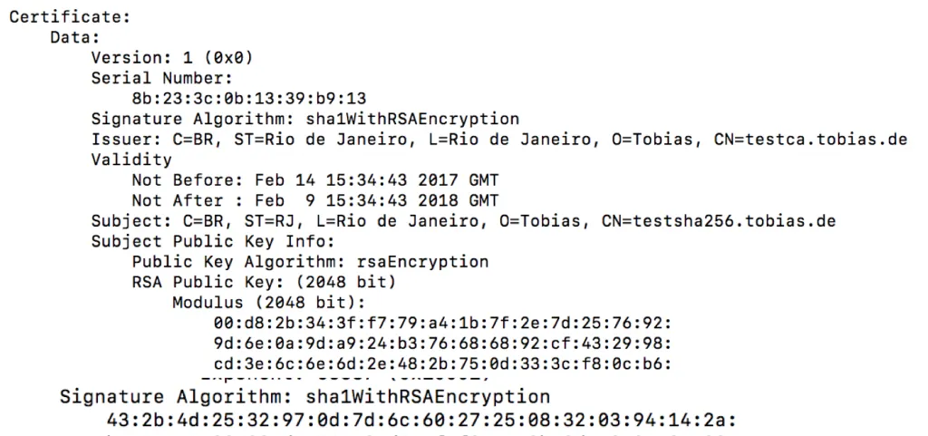 Why is the certificate signed with SHA1? Without providing –sha256 parameter, openssl is using the default value. Depending on the version of openssl you are using, the default may be using SHA-1. This is the case when you use the default openssl binary available on MacOs.