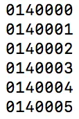 This prints (echo) the numbers 140000 to 140005 with leading zero.
