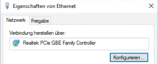 Go to Network and adaptor properties. Select the LAN adaptor and open its properties. In the property screen, select Configuration.