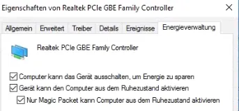 After activating WOL in the BIOS, you need to configure Windows 10 to allow the device to wake Windows. My test computer is a Lenovo Q180 running Windows 10 German. More information on how to activate WOL for this device can be found here đź”—.