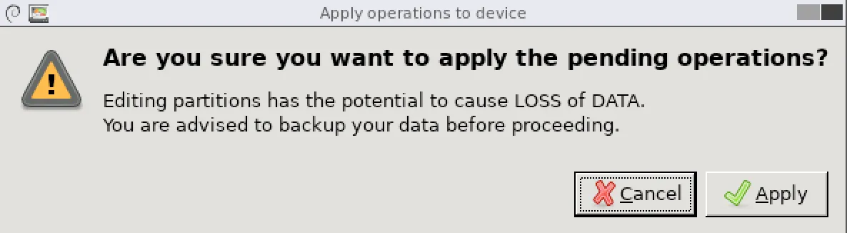 Last chance to stop. But as you need the new free space for Docker, click again on Apply.