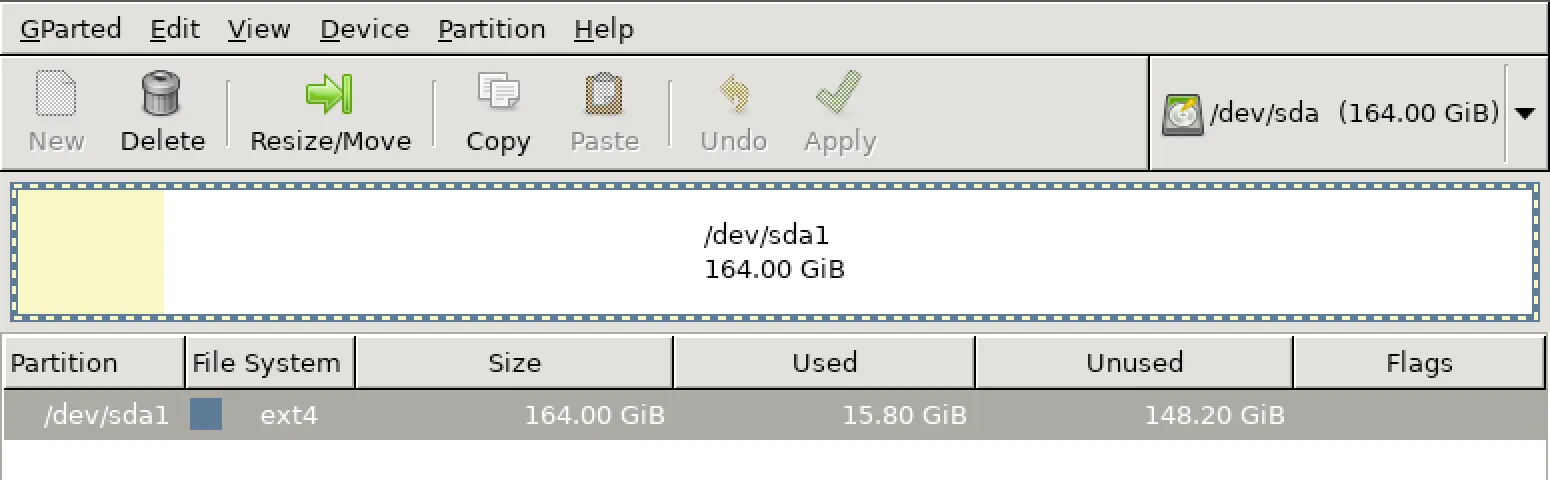 After the operation finishes, you can see that the partition is now offering 164GB.