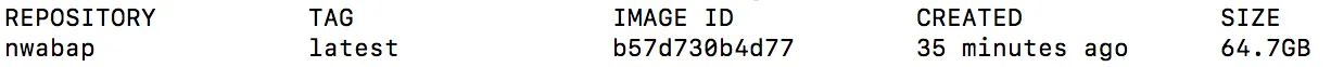 Shutdown the VM. As the Docker.cqow2 file changed was the original one used by Docker, you have only to restart Docker to benefit from the new image size. Now you can use Docker to run SAP NetWeaver ABAP with just one command. As the Docker.qcow2 file is empty, even when the image size is reported as 4 GB, compressed (zipped) it’s just a few MB.