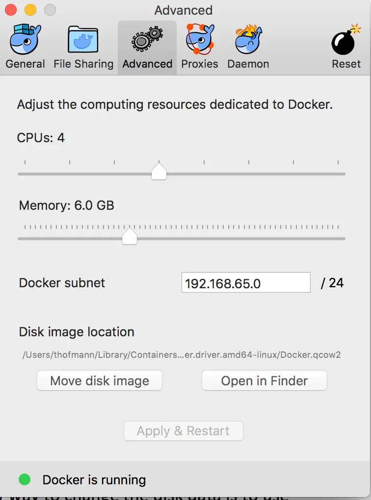 The Docker.qcow2 file is a VM disk. Therefore, it is possible to manipulate it like any other virtual disk: you can increase the disk size and access files within the VM disk when you mount the image in a VM. An easy solution to change the disk size Docker has available to store images and containers is to increase the disk size. This can be done by using Qemu 🔗 and GParted.