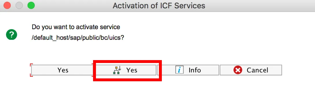 You may also activate this ICF node using an alternative approach. Instead of activating it in the SICF transaction, you can use a transaction for activating special ICF services. More information at SAP Help 🔗.