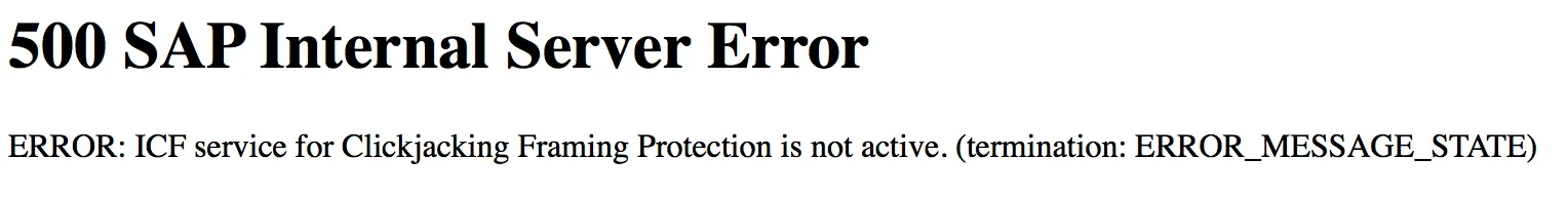 ERROR: ICF-Service für ClickJacking-Framing-Protection ist inaktiv (termination: ERROR_MESSAGE_STATE)