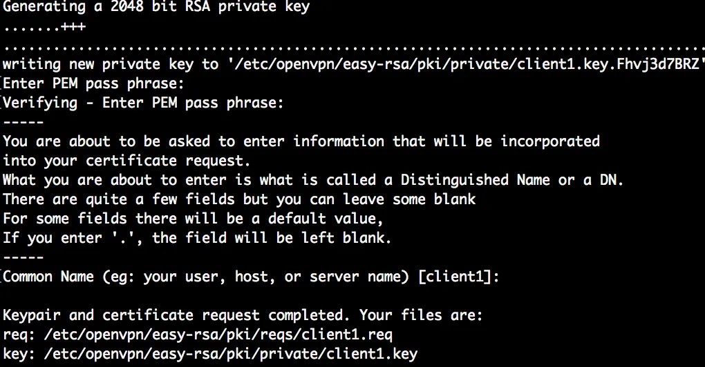 - Private key: easy-rsa/pki/private/client1.key