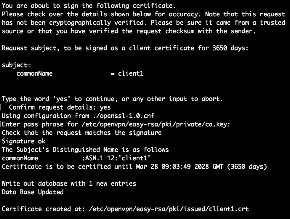 sudo ./easyrsa sign-req client client1