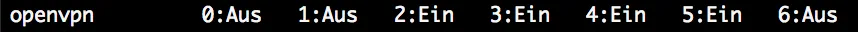Check whether or not openvpn is already configured to run as a service. For each run level, the status is either on or off. In case of on, openvpn is already configured to run as a service. In this example, opevpn is not configured to run as a service in any runlevel.