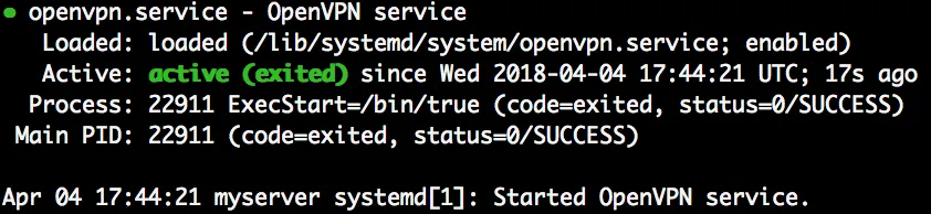 OpenVPN will now be started as a service in the run levels 2, 3, 4 and 5. Output of openvpn is then written to /var/log/messages