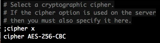 WARNING: 'cipher' is used inconsistently, local='cipher AES-256-CBC', remote='cipher BF-CBC'