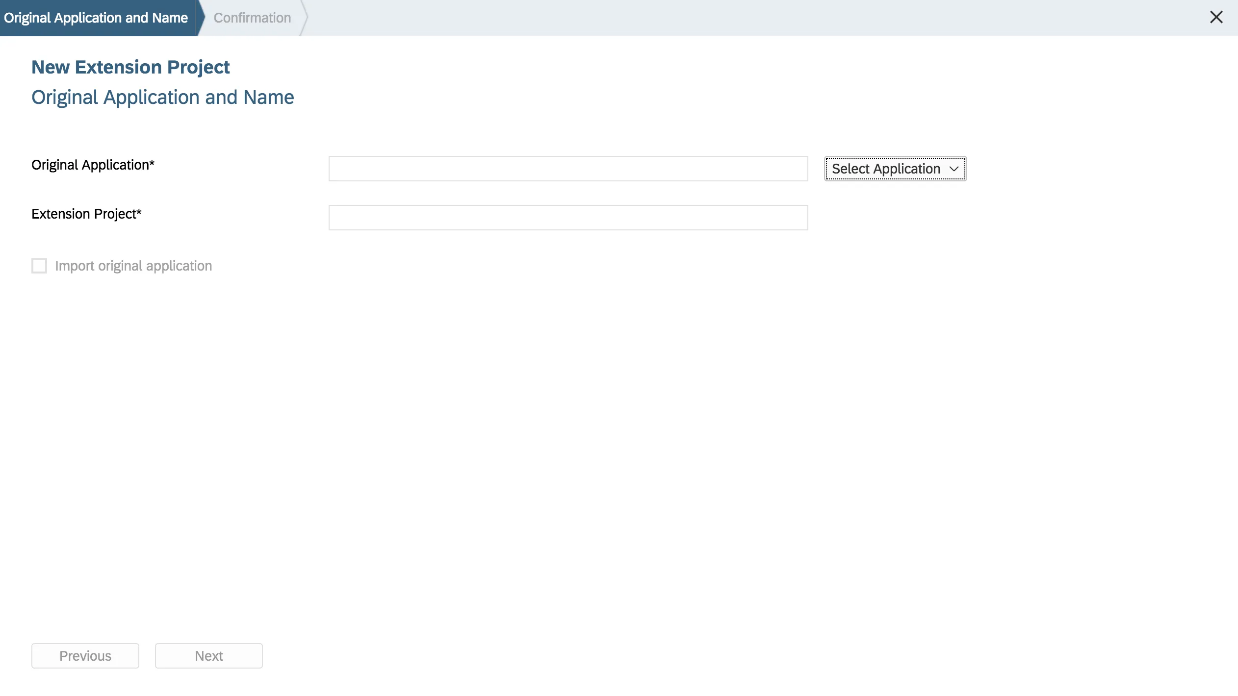 A developer tries to extend a Fiori app. In Web IDE, the project wizard for an extension project is used.