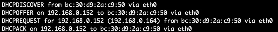 DHCPACK on 192.168.0.152 to bc:30:d9:2a:c9:50
