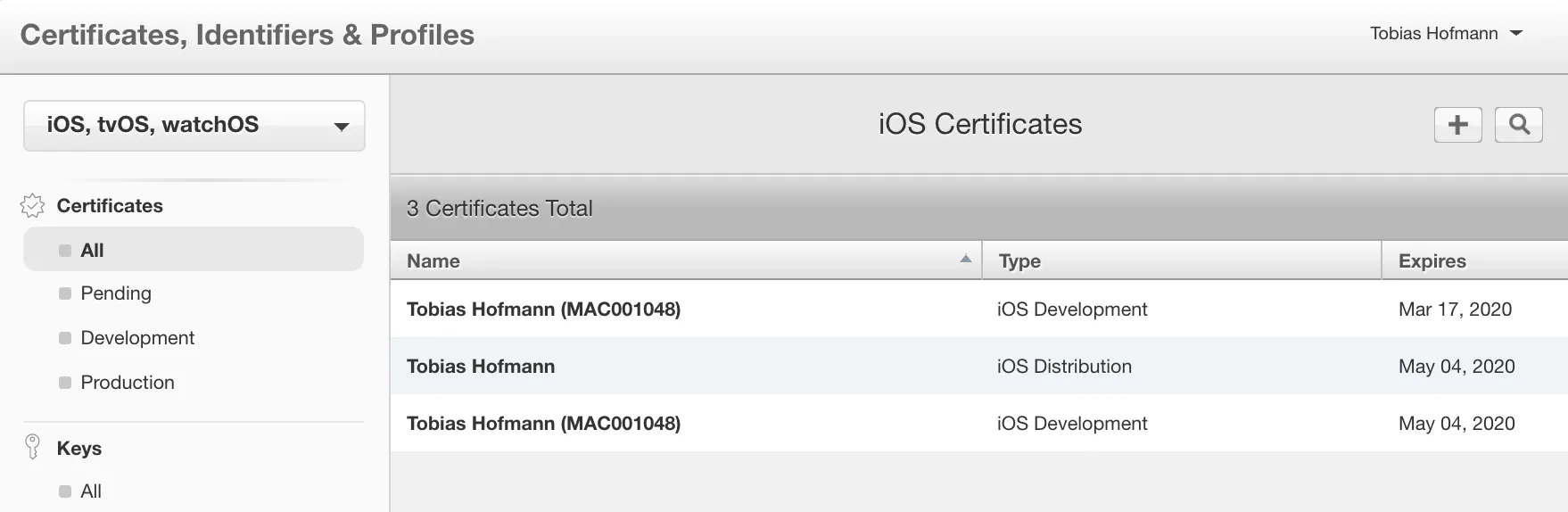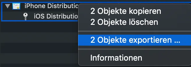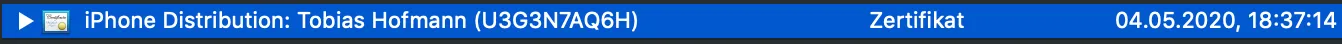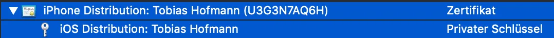 Now I have my personal distribution certificate (Zertifikate.p12) and provisioning profile (.mobileprovision).