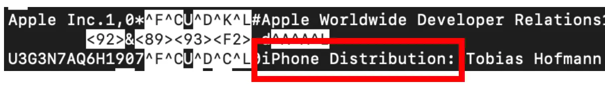 Which one is it? When I created the provisioning profile, I added a distribution certificate. I only have one, so this is the certificate I need.