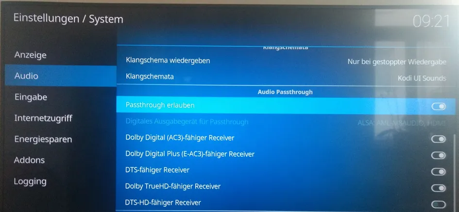 - Activate codecs your AVR supports. Mine supports AC3, E-AC3 (Atmos), DTS, True-HD.