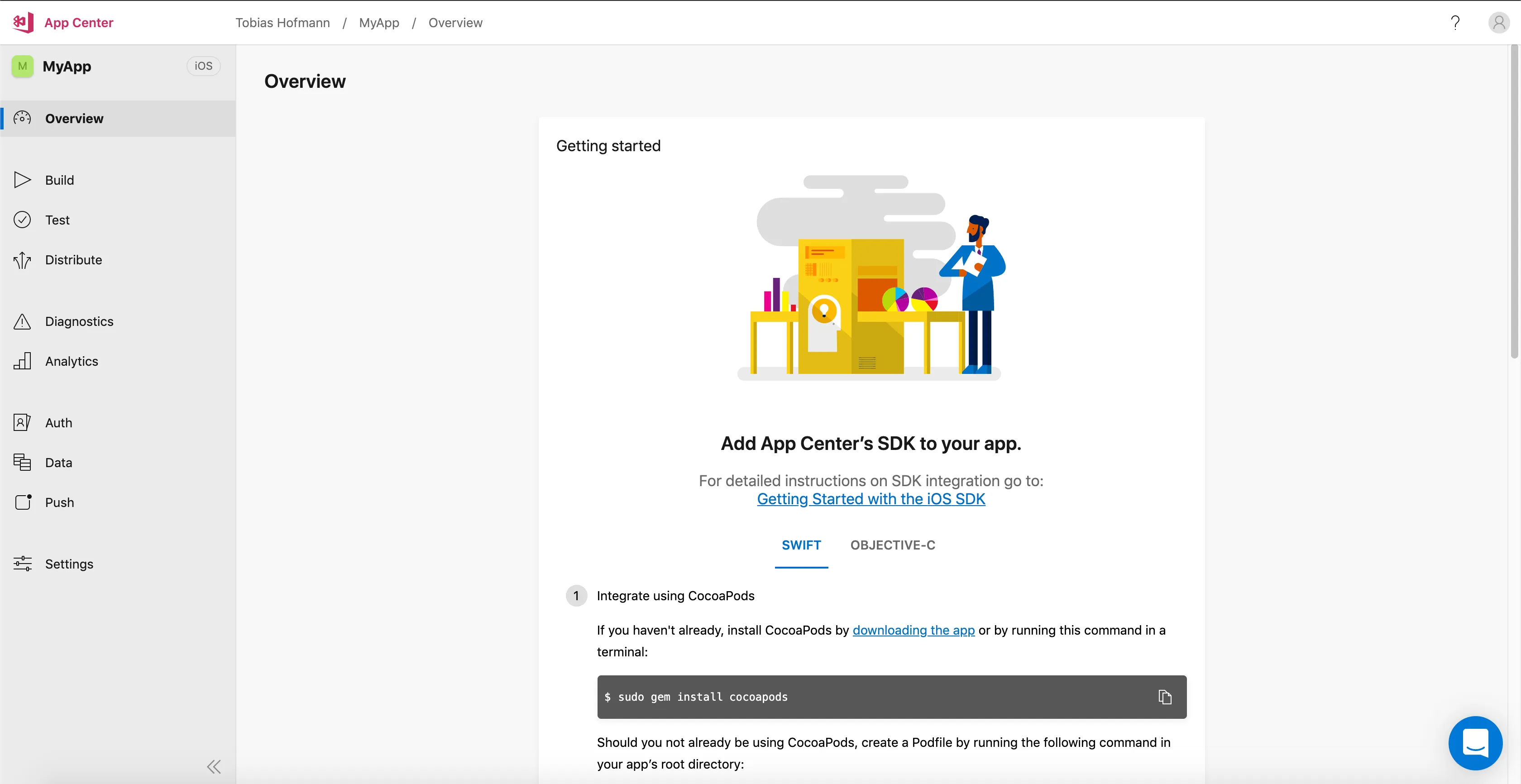 You can add AppCenter features to you app, but it’s optional. I already have a running app that I just want to build and distribute. Next step is to configure the build.