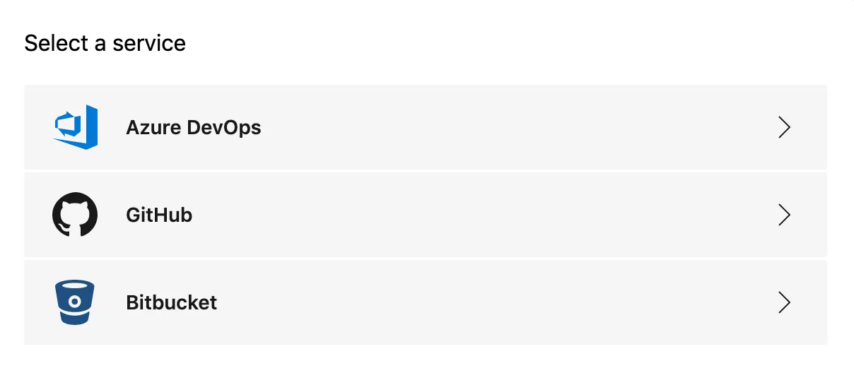Select the repository where the source code is hosted. I use Azure DevOps (free tier). Unfortunately, GitLab is not listed and in the free tier I am using it is not possible to add self-hosted git repositories.