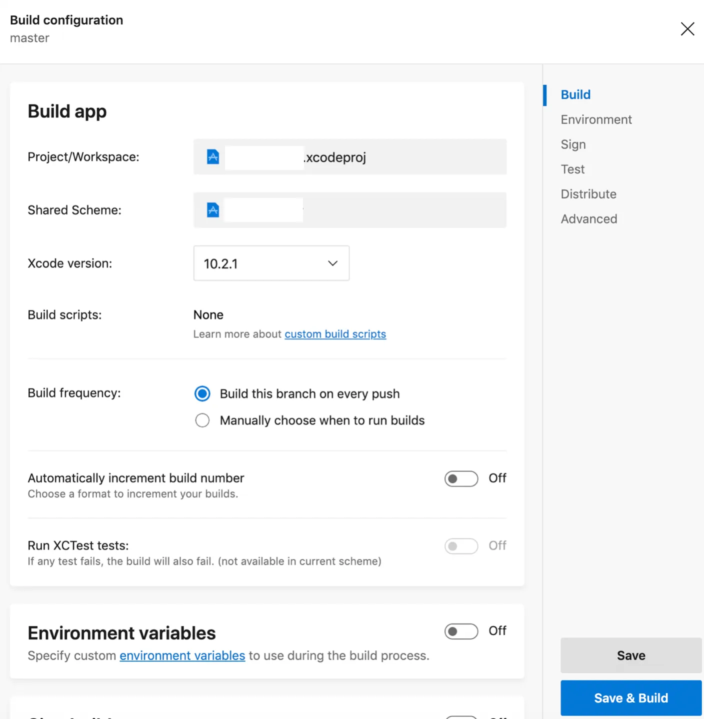 You can now click on save or already start your first build.