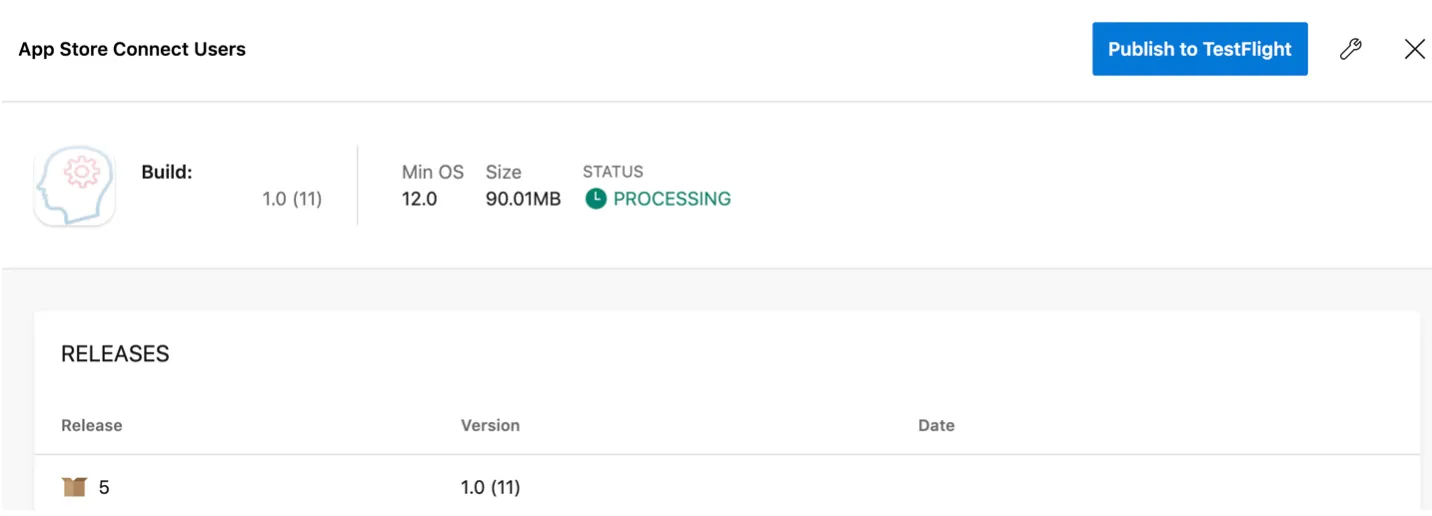 The status of the app in AppCenter and App Store Connect changes and you can distribute the app to your beta testers via TestFlight.