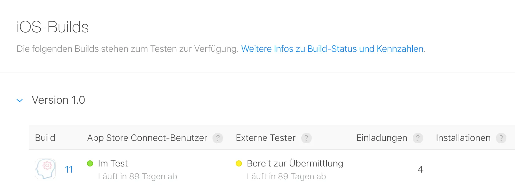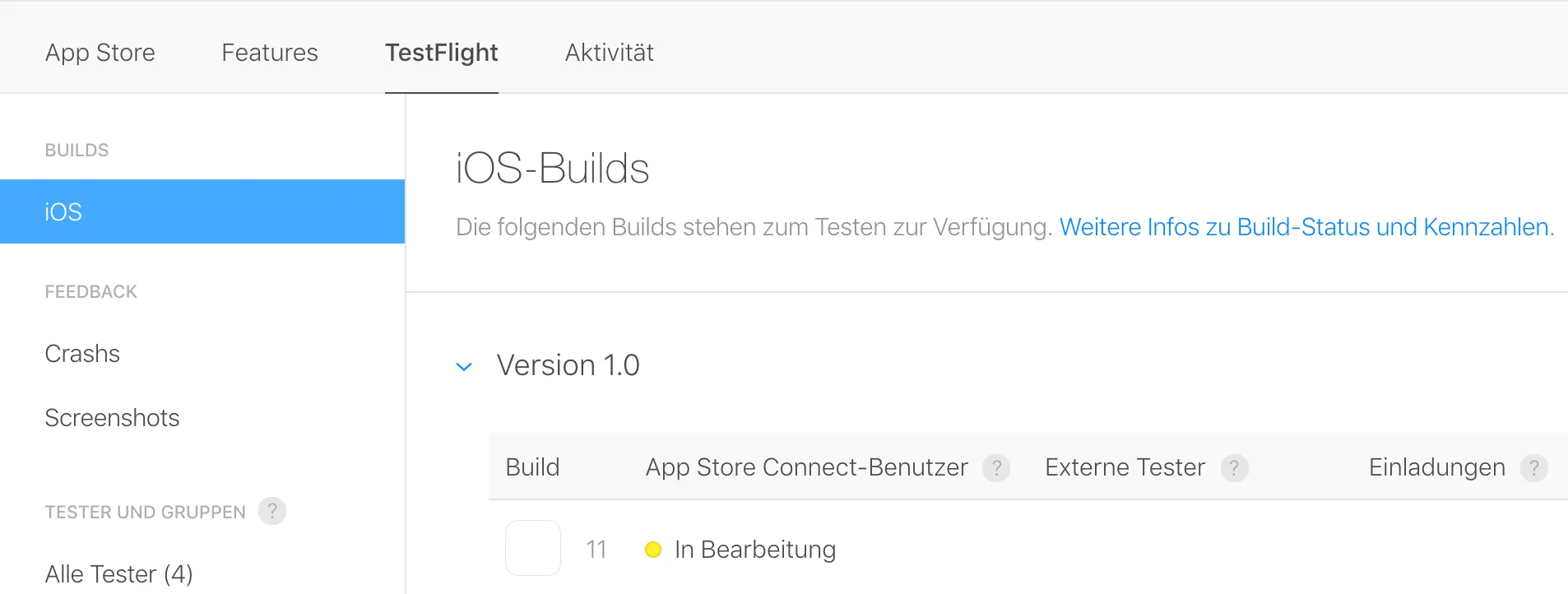 After the build is done, the app is send to Apple Connect and processed there. Apple will check if the build is OK. This will take some time. The status of the build is Processing.