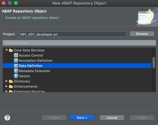 In ADT, create a new CDS Data Definition.
