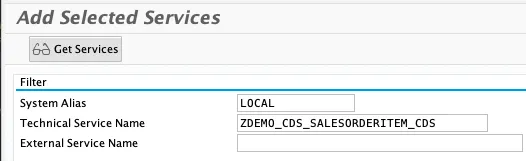 Select the service: ZDEMO_CDS_SALESORDERITEM_CDS