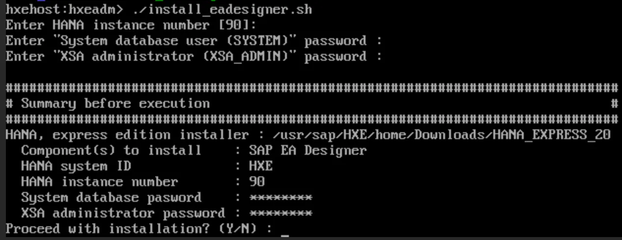Confirm to continue installation: Y.