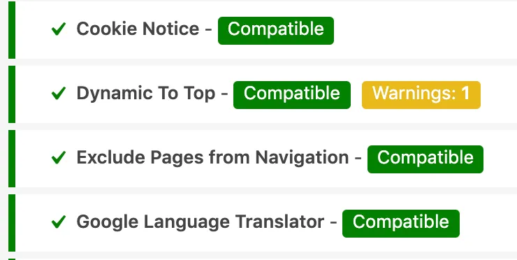 This gives as an output an evaluation of the plugins and their compatibility status.