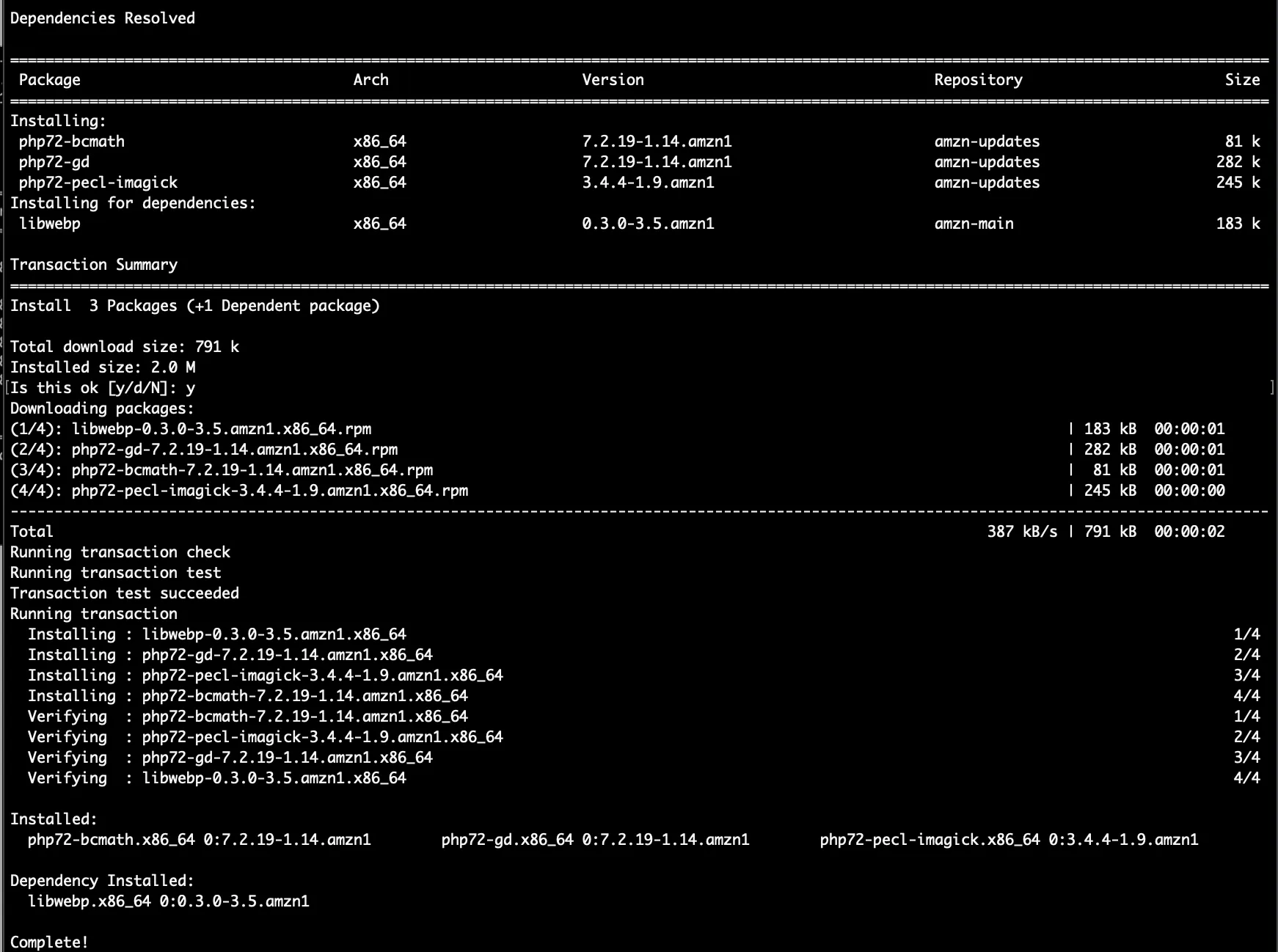 sudo yum install php72-opcache php72-mysqlfnd php72-gd php72-pecl-imagick php72-bcmath