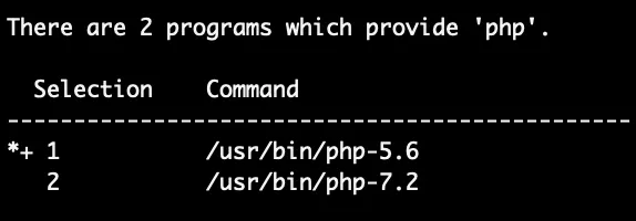After installing PHP 7.2 it must be activated. The old PHP version is still the default one, meaning that calling php is not calling php 7.2. To change the paths, run alternative. It will show the available alternatives and asks which one you want to use. I am going to use php 7.2, so the input here was 2.