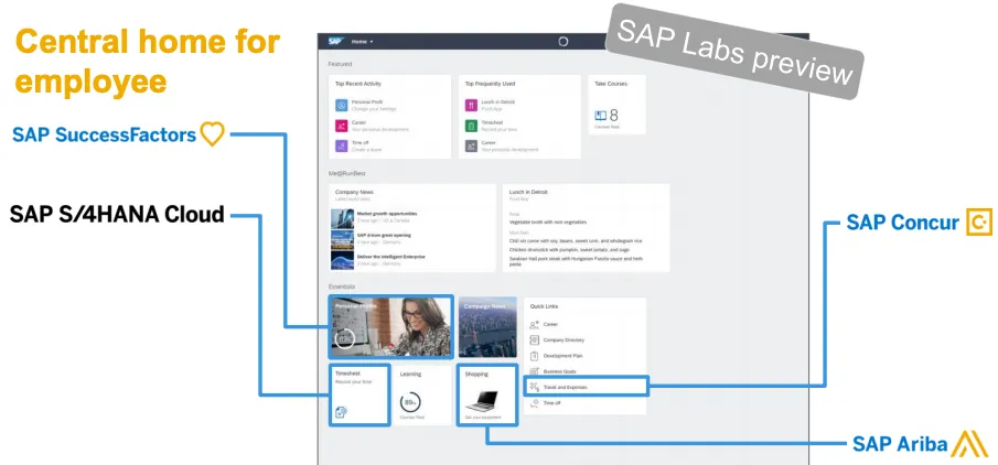 Ab wann dies gelebte Realität wird? Ob es mehr ist als dynamische Kacheln oder Links? In früheren Lab Previews wurde schon die Idee gezeigt direkt mit den Anwendungen interagieren zu können: Freigabe von Workflow, weitere Information zu einer Bestellung, etc. Bleibt die transparente Integration von Fiori Apps nur ein Teaser? In anderen Vorträgen herrschte hier mehr Realismus, als dort die Spaces und Pages als Lösung für die Integration angepriesen wurde. Aber wie soll die Integration jetzt am besten erfolgen? Integration der App oder Absprung auf ein FLP? Jetzt wird wieder eine zentrale Inbox als Heilsbringer angepriesen. Beispiele wie Time Sheet Extension App mit Microsoft zeigen hier besser eine durchdachte Integration auf.