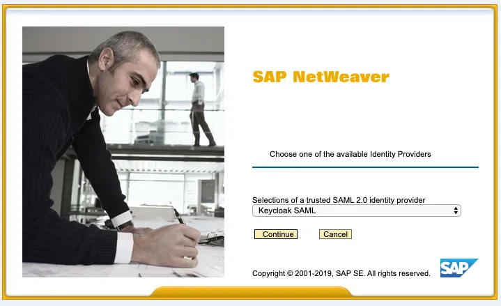 You should see the NetWeaver logon screen and the option to select the SAML 2.0 IdP.